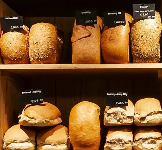 Zo hebben we onder andere desembrood met een eigen desemcultuur, een mengsel van meel en water. Door dit mengsel te laten fermenteren ontstaan melk - en azijnzuren. Dit zorgt voor een natuurlijke rijzing van het brood. Door de lange rijstijd worden vitamines en mineralen beter opgenomen en ontstaat een voedzaam brood met veel geur en smaak. Nadat proces bij onze bakker komt het naar ons toe en bakken wij het verder af. Zo hebben we ook biologisch brood. Een ruime keuze.